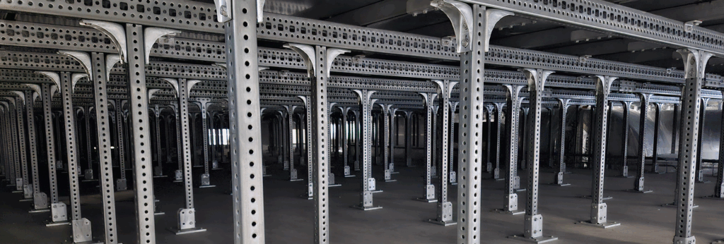 Vysoce sofistikovaný modulární system pro montáž různého typu. Ať už potřebujete rozvody technologií, zdvojené podlahy, pochozí lávky a schodiště nebo podkonstrukce, je tento systém pro Vás ideálním řešením díky své variabilitě a rychlosti instalace bez snížení nároku na kvalitu výsledného produktu.